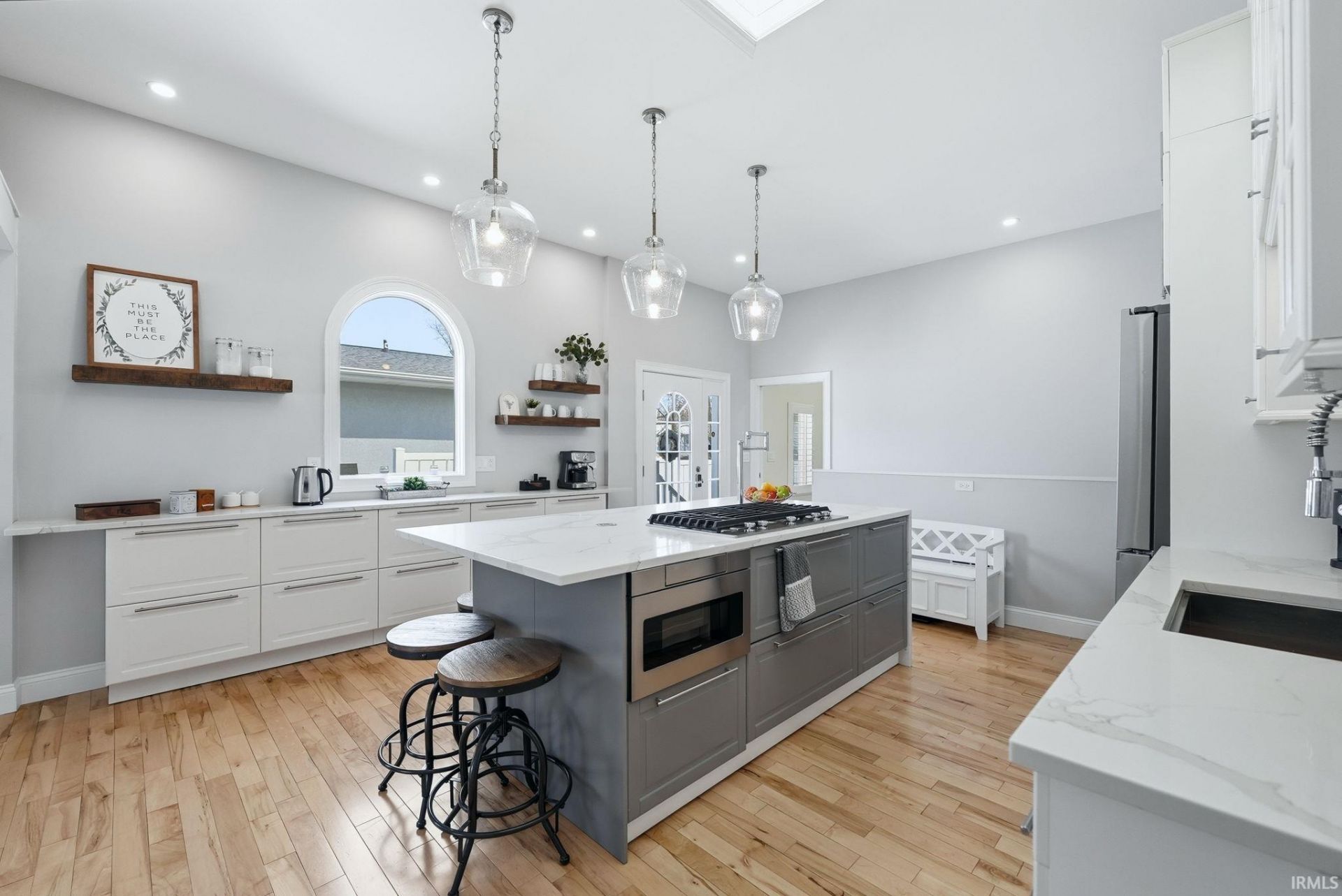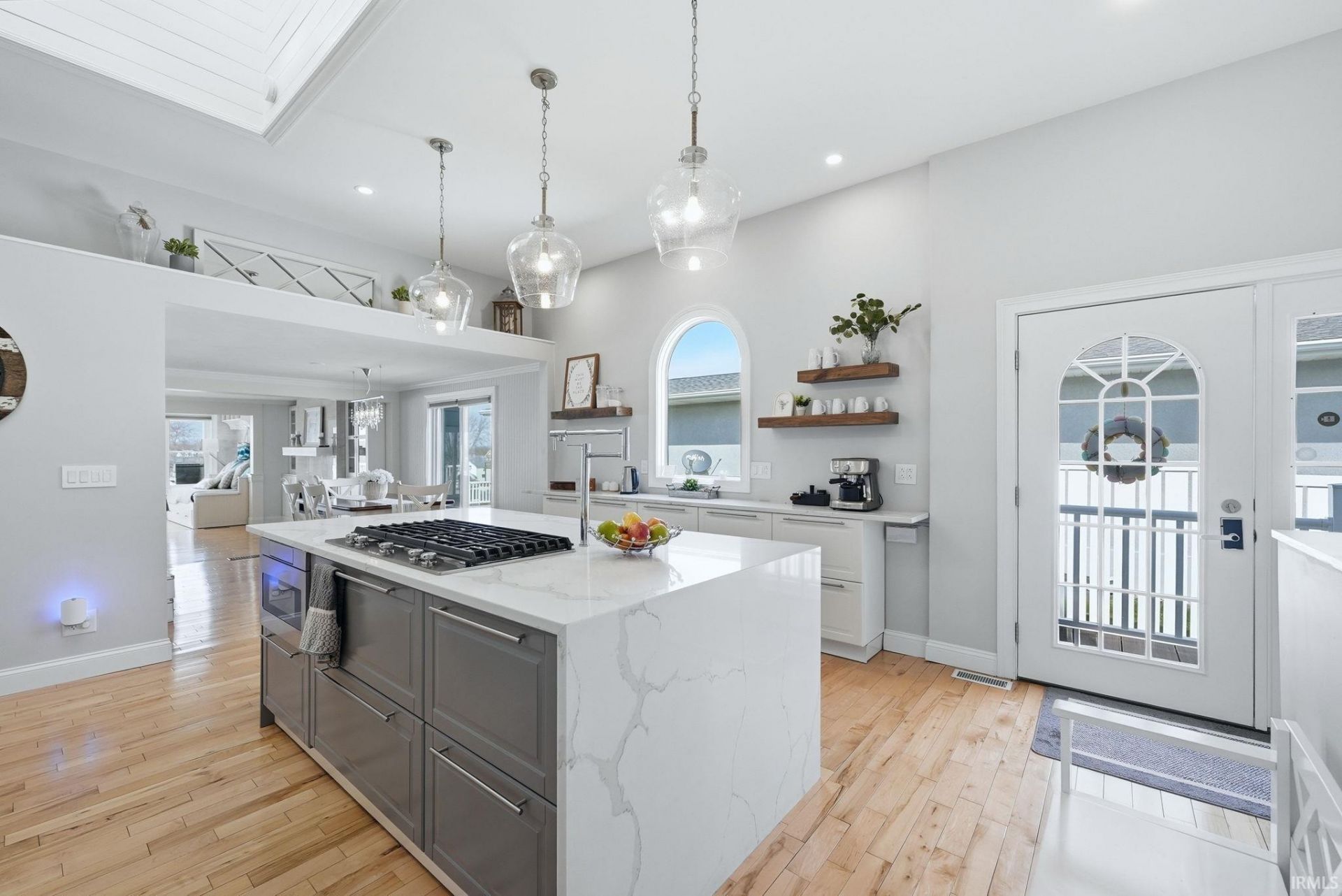 | Open House: 4/18 11am"2pm Channel-front lake home in desirable Stroh's Point with quick boat access to Johnson's Bay. Features maple hardwood floors, whitewashed walls, and custom fireplace. Designer kitchen with quartz counters, custom cabinetry, double oven, touchless faucet, and dual-zone refrigerator. Primary suite with shiplap feature wall, cupola with chandelier, walk-in closet, and spa bath with rainfall shower and towel warmer. Loft provides additional living/sleeping space. Finished lower level includes office, storage, and guest suite with soaking tub. Outdoor living includes large deck with fire pit, porch swing, dining area, and patio with natural gas grill hookup. Additional features: 4-car heated garage with glass door, boat lift & seawall, paved driveway, and metal roof.